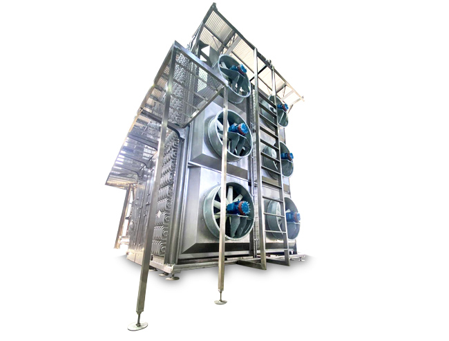 O congelamento é gerado por uma corrente horizontal de ar frio proveniente de ventiladores que fazem o ar passar primeiro pelos evaporadores e, em seguida, pelo produto.